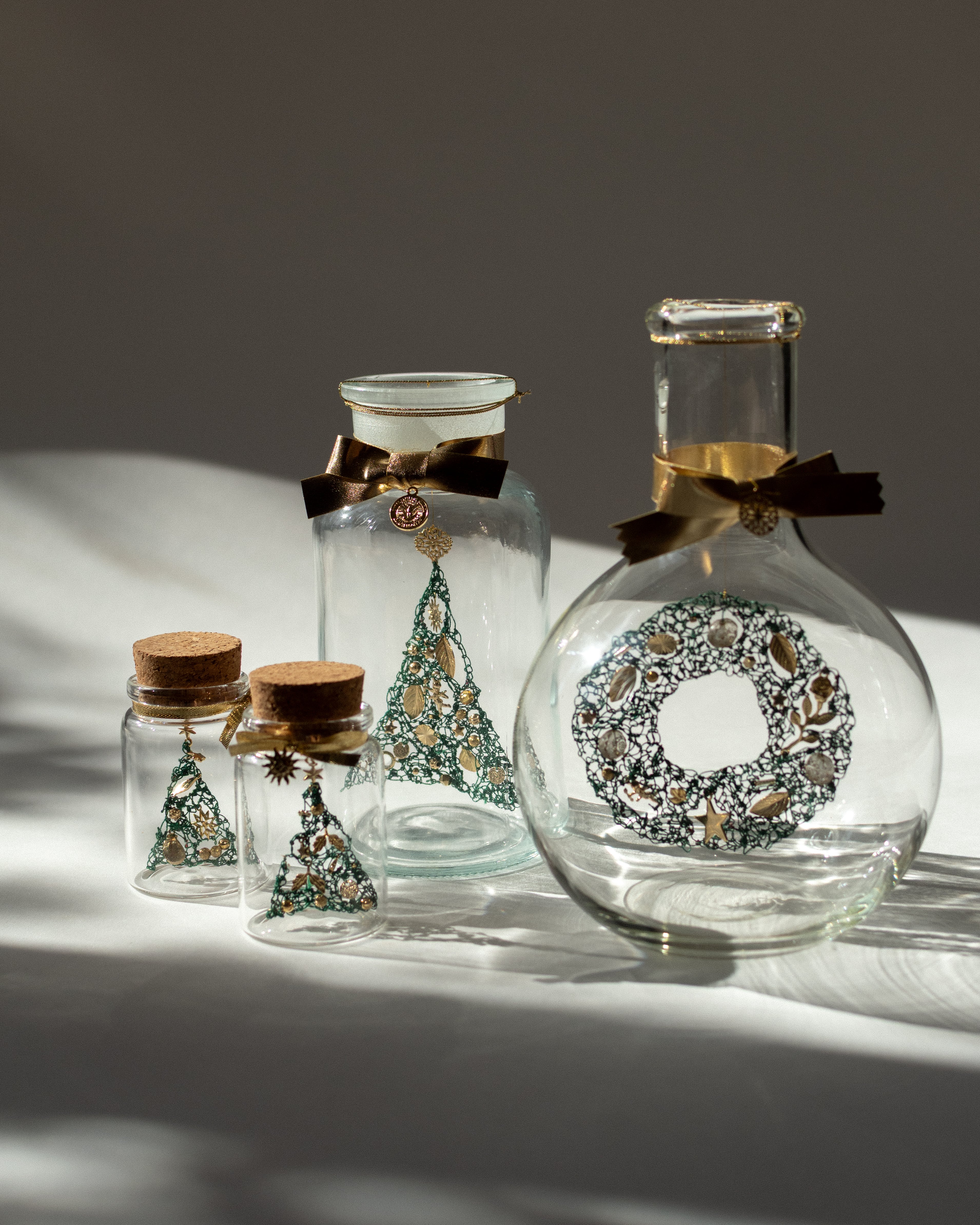 素材:糸、ビーズ、ガラス瓶 ほか