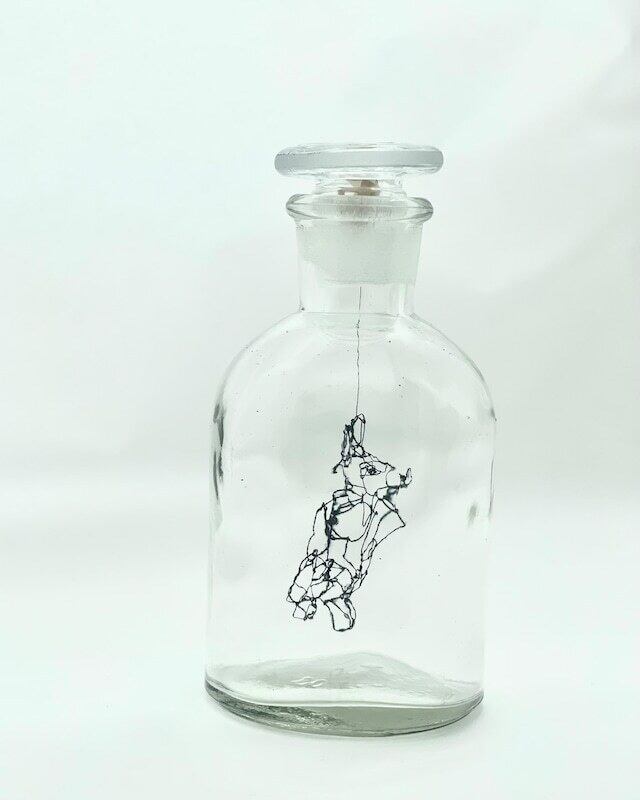 ジンベイザメの透過刺繍、薬瓶に入れた作品になります。